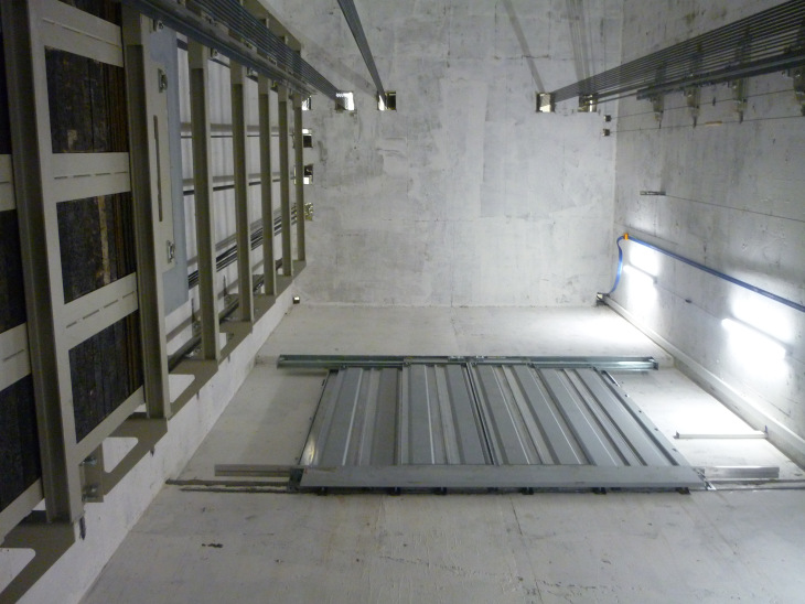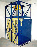 Представляет собой самонесущую шахту, выполненную из металлических профилей. Внутри шахты по вертикальным направляющим перемещается грузовая платформа.